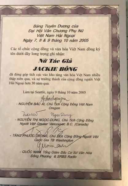 2011 – Producer, Women Issues, Appreciation by Vietnamese American Television (VATV-DC) for 15 years of service